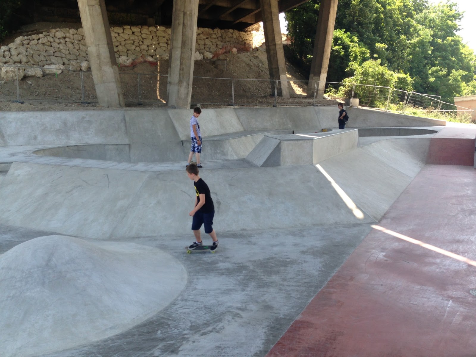 Normalement inaccessible pour cause de béton encore frais, les panneaux sur place laissent à penser que la session n’aura pas lieu … mais c’était sans compter sur les chaleurs extrêmes qui sévissent depuis quelques jours, et qui nous assurent un accès illimité à la structure.